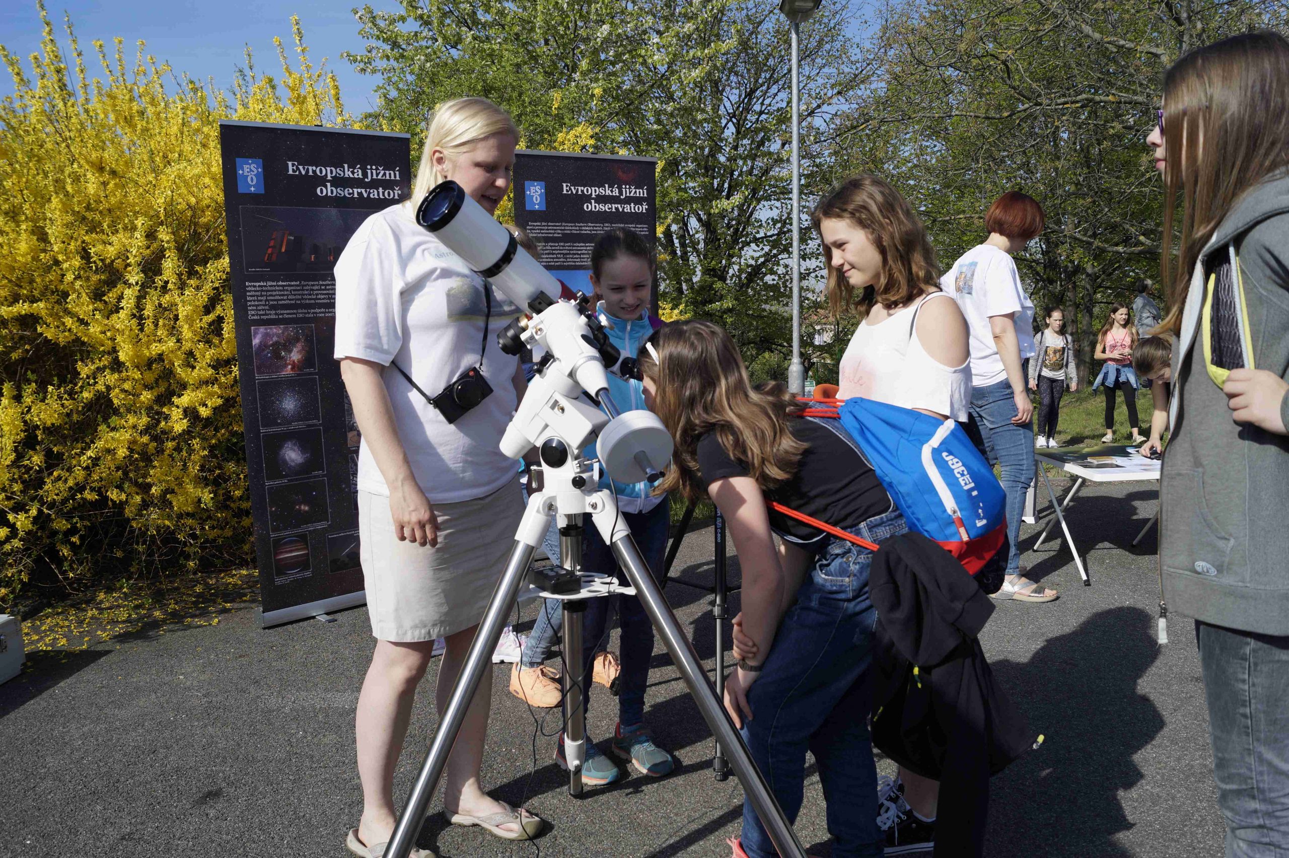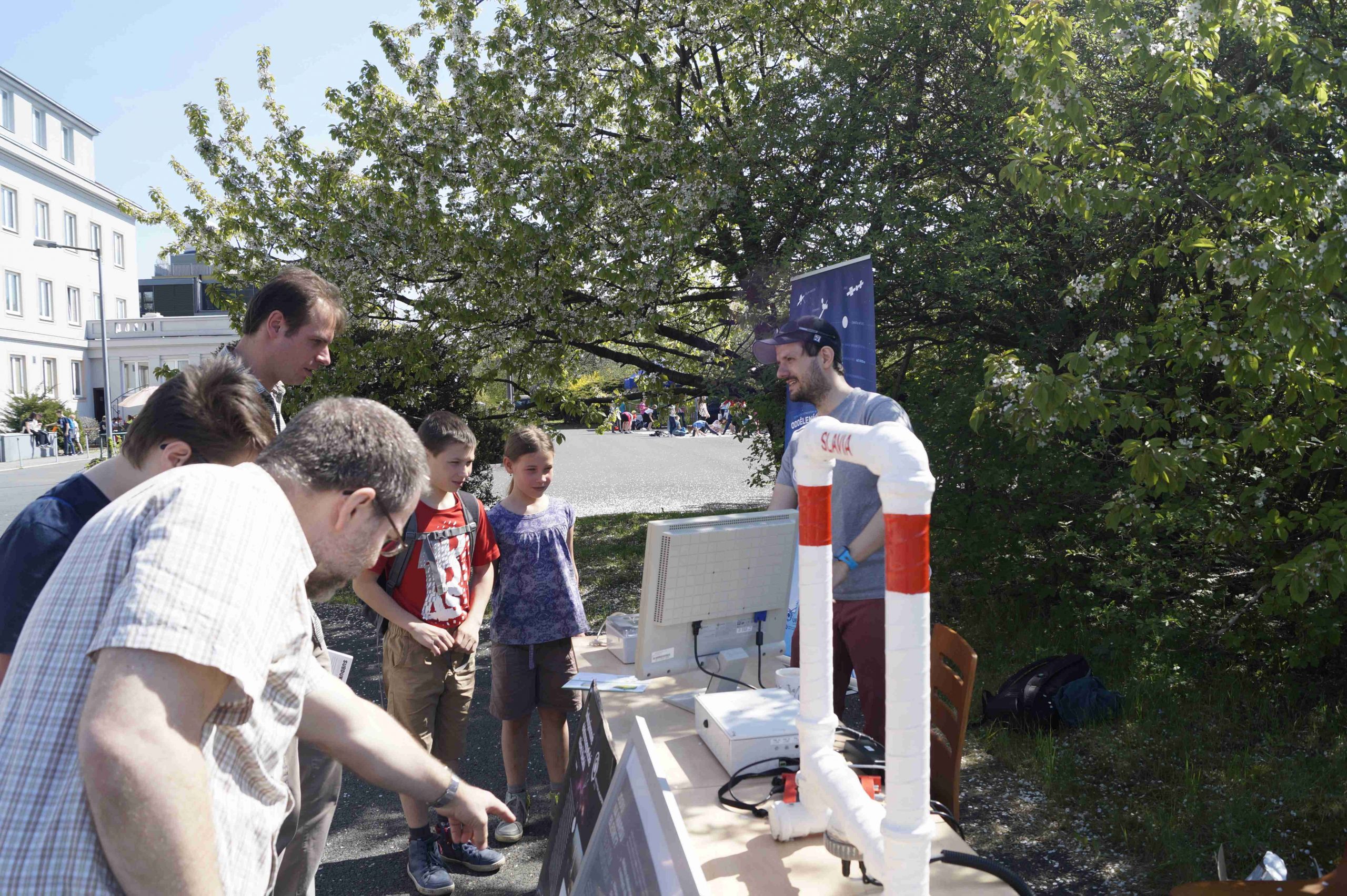 Kolegové a kolegyně z Ústavu fyziky atmosféry AV ČR si pro děti přichystali tornádo v lahvi a ukázky vzniku některých meteorologických jevů. Odborníci z Astronomického ústavu AV ČR dětem v dalekohledu ukazovali skvrny na slunci. V experimentální laboratoři pracovníci Ústavu hydrogeologie, inženýrské geologie a užité geofyziky vyprávěli dětem o vzniku pískovcových bran a dokonce jim tento miliony let trvající proces dokázali předvést během několika minut. Jak správně recyklovat elektronická zařízení ve své stánku předváděla firma Electrowin.