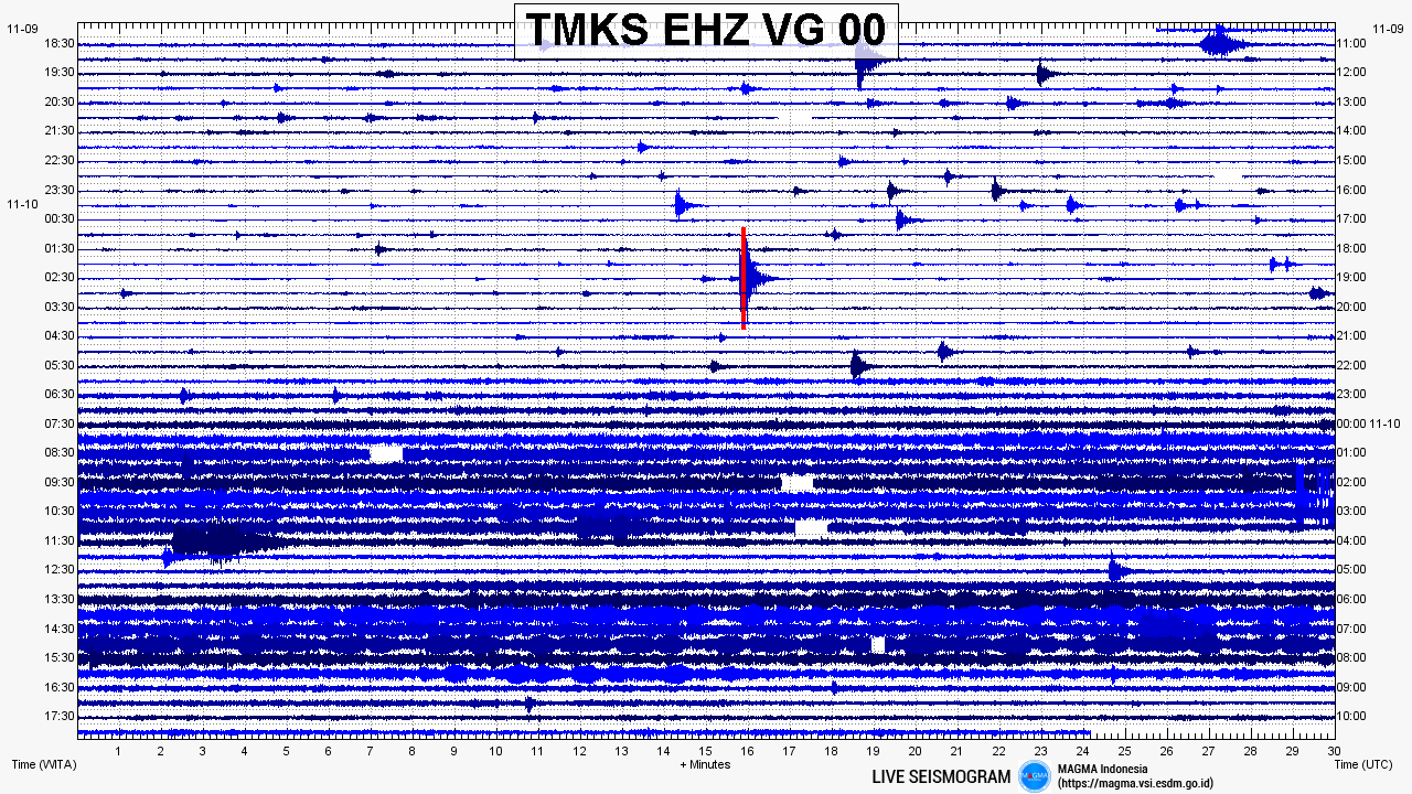Obrázek: Denní seismogram z 9. – 10. listopadu 2017